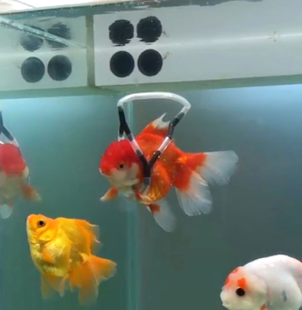 金魚出狀況只能倒著游 暖心主人特製「水中輪椅」讓牠呆萌漂