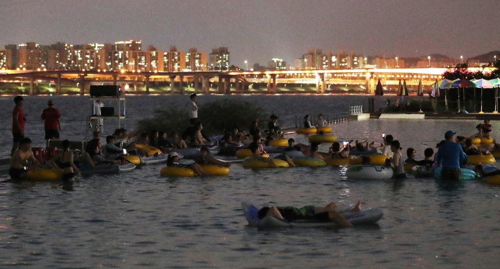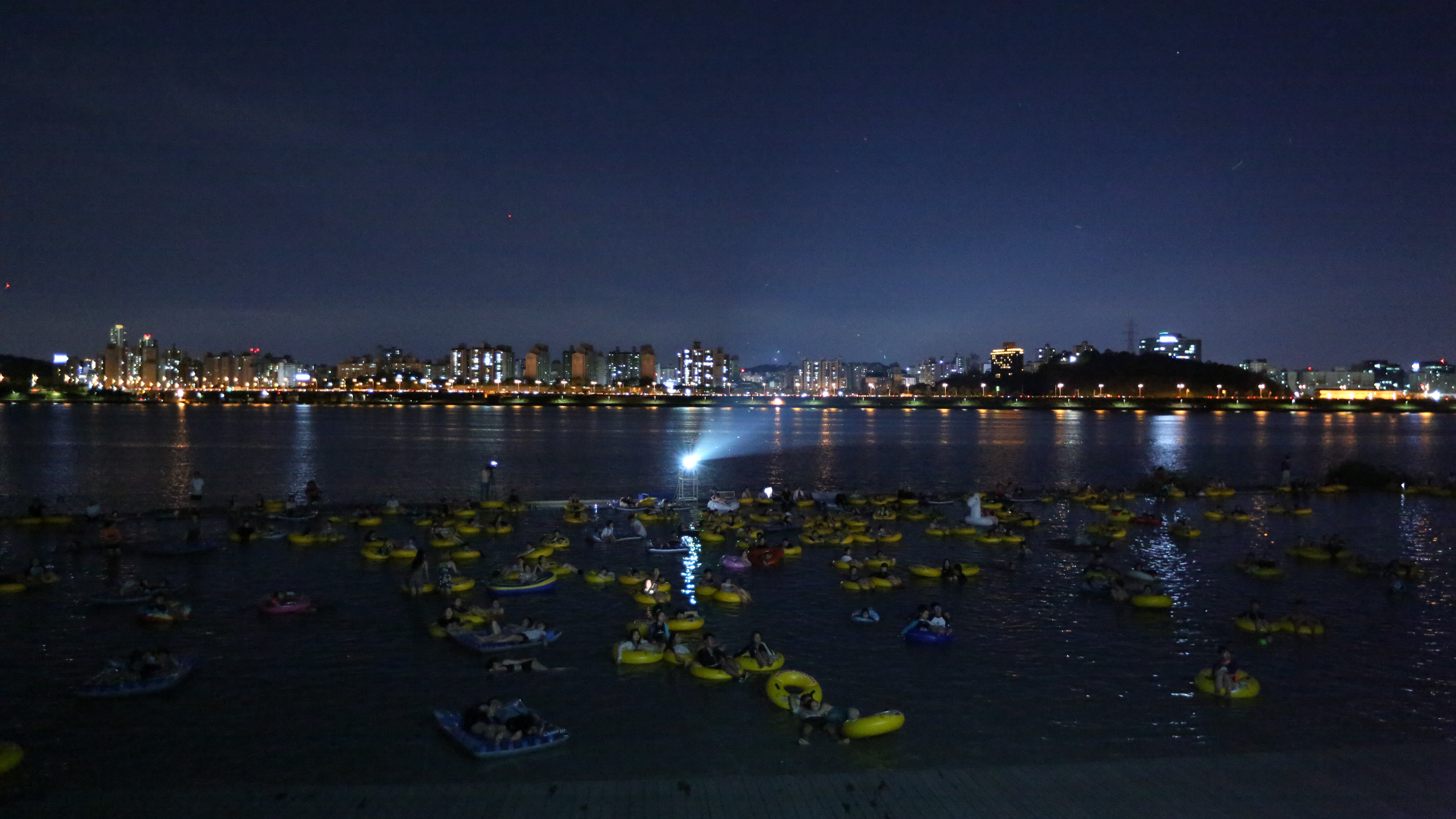 在涼爽的漢江上躺在浮床上看電影,真的是夏日最棒的享受!這樣的水上電影院太讓人羨慕了!