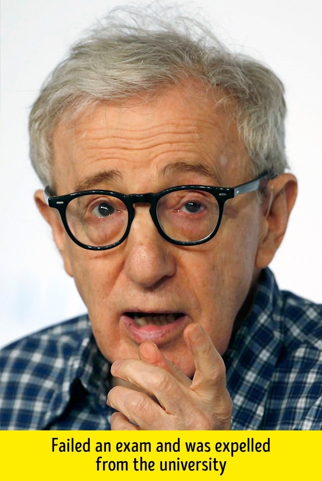 ▼伍迪艾倫(Woody Allen)-考試沒過被退學:他拿過4次奧斯卡獎,還是有名的電影製作人。但大學期間,他掛科太多次,被紐約大學退學。他沒有一蹶不振,結束無聊的大學生涯後,他終於走上適合自己的道路,並達成所願。