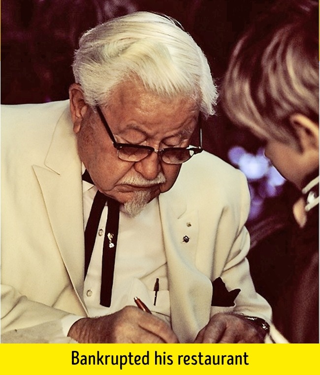 ▼哈蘭德桑德斯(Harland Sanders)-餐廳倒閉:他就是大名鼎鼎的「肯德基爺爺」。但他的第一間餐廳經營不善,最後無力支撐。65歲那年,他開始在全美各地旅行,並向企業兜售自己的美味雞翅。被拒絕1008次後,他還是堅信自己的獨特配方會獲得成功,現在我們都看到了,肯德基的雞翅很好吃!