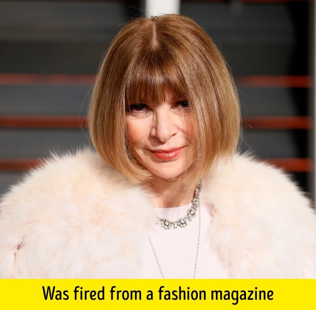 ▼安娜溫圖(Anna Wintour)-被開除:她本來是《Harper’s Bazaar》的時尚專欄作家,因為與編輯有分歧被開除。現在她是《Vogue》的主編,也是時尚圈最有影響力的人之一。她認為過去的挫折是她創造更多成就的動力。她還認為,人們應該捍衛自己的意見,因為獨特的思維才是最難得的。