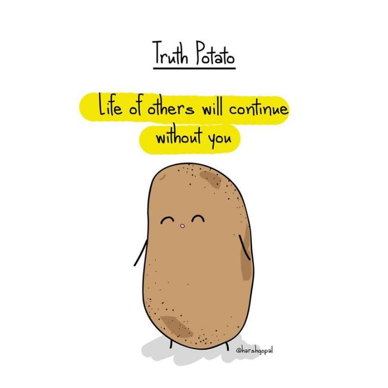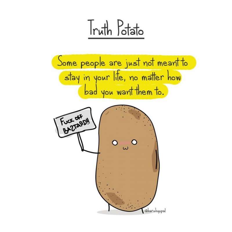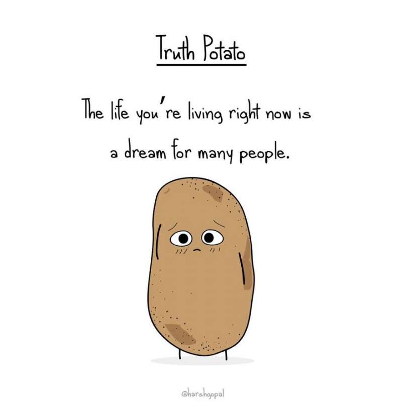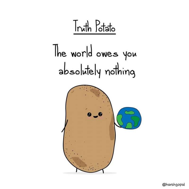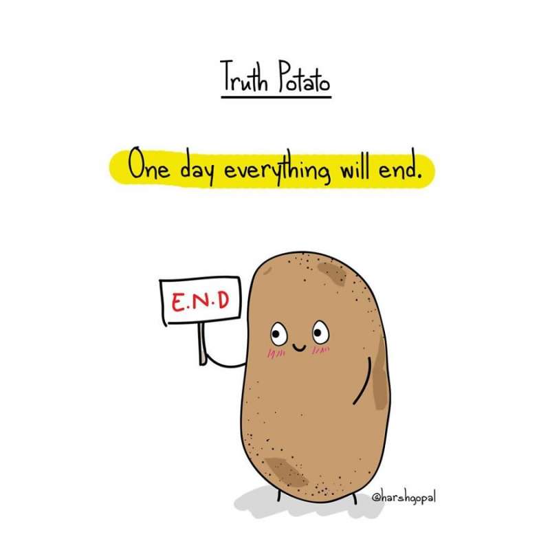 雖然這顆馬鈴薯說出了不想面對的現實,但讓人不得不點頭讚同。我們的世界就是這樣嚴峻,一起成長,學會堅強吧~