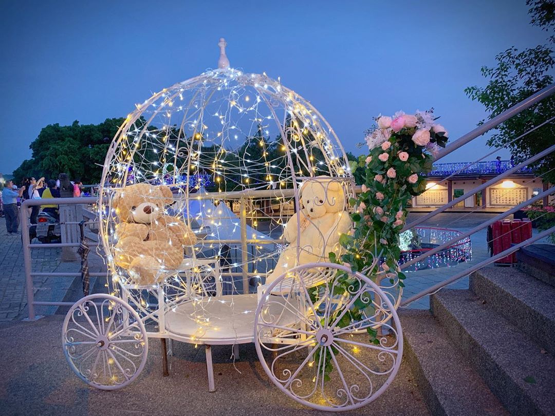 ▼在八卦山的「卦山夕照-幸福鵲橋」七夕活動,由彰師大設計團隊製作,夜間裝置藝術主題圍繞在童話故事,像是「灰姑娘的玻璃鞋」、「南瓜馬車」、「美女與野獸玫瑰花園」、「中秋玉兔」等等,彷彿一秒走近夢幻的童話世界~