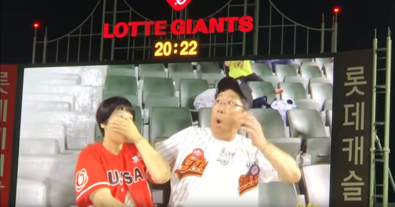 2019年07月31日經常看球賽的朋友一定對Kiss Cam不陌生。為了增添氣氛,中場休息時,場內的直播鏡頭會隨機抽選現場觀眾,上鏡的人則需與身邊的人親吻。7月22日,在釜山社稷棒球場,南韓棒球隊樂天巨人與SK飛龍的比賽中,一對中年夫妻被Kiss Cam捕捉到,他們接下來的表現超可愛。