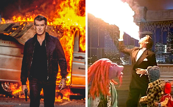 ▼曾經飾演過007探員的皮爾斯布洛斯南 (Pierce Brosnan)也會表演噴火。