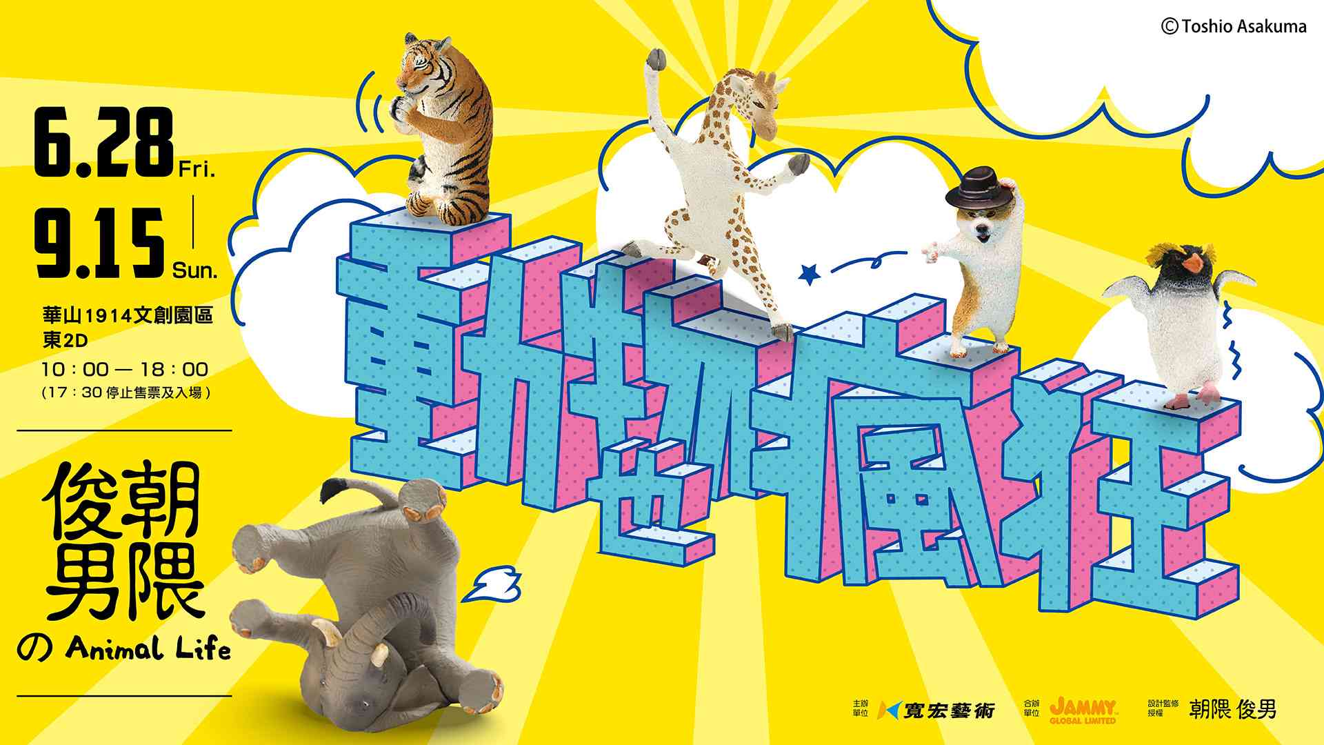 ▼【動物也瘋狂 朝隈俊男的Animal Life】來自日本的一流原型師-朝隈俊男,親手打造一系列栩栩如生的擬人化動物公仔,在台灣發行的Animal Life系列《狗瑜伽大師》、《翻滾吧!白眼》、《狗舞蹈大師》、《祈》等等,每一彈都深受粉絲喜愛。2019首次大型主題式展覽將在台北華山1914文化創意產業園區展開。