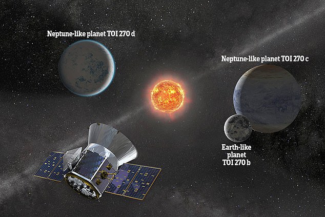 ▼研究團隊透過TESS 衛星再從73光年外找到3顆存在於「TOI-270」恆星系統的行星,他們發現母恆星是一顆老年M型紅矮星,品質和大小約太陽的40%。