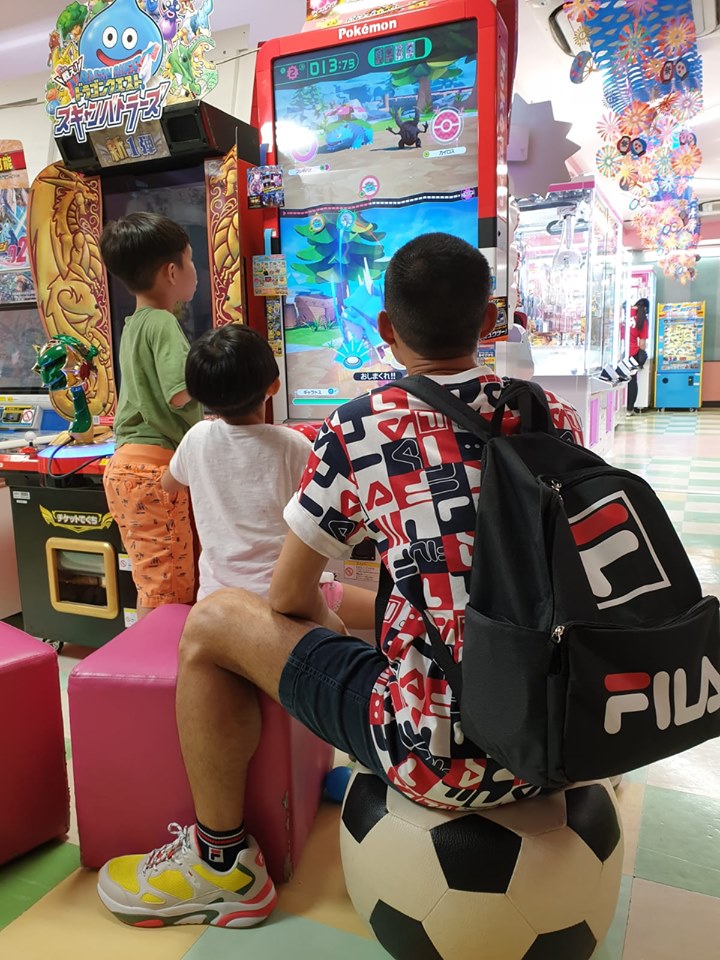 ▼從浩子在粉絲團分享的照片可以看到,他們第一站來到了日本,當孩子正在專心的玩機台時,他也在背後照顧著小孩。