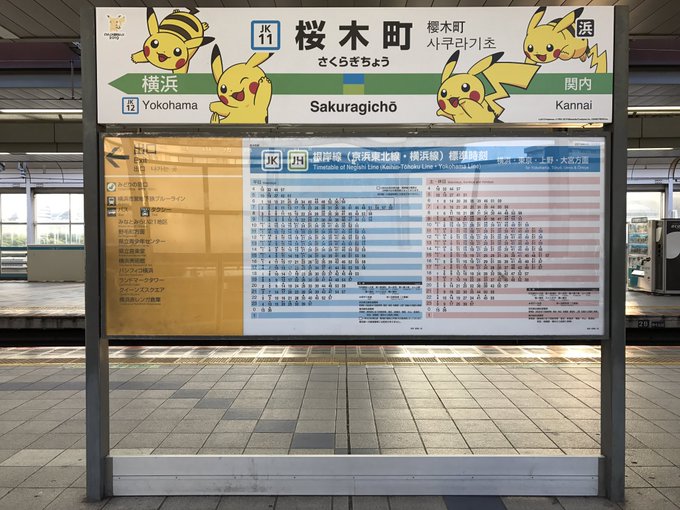 ▼既然是「皮卡丘大量發生中」,當然除了驗票口的皮卡叫聲外,周邊的車站也呈現皮卡丘們歡樂開趴的樣子;像這個同樣位於橫濱的櫻木町站,一整個超療癒的~