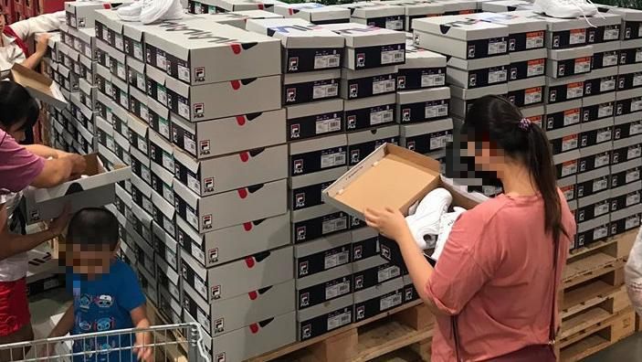 ▼從網友分享的照片來看,好市多入口處鞋盒堆成小山,很多民眾在試穿。因為價格太吸引人,加上數量有限,往往一上架就被搶光。高雄中華店中還有人一次買26雙,或者幫別人代購。