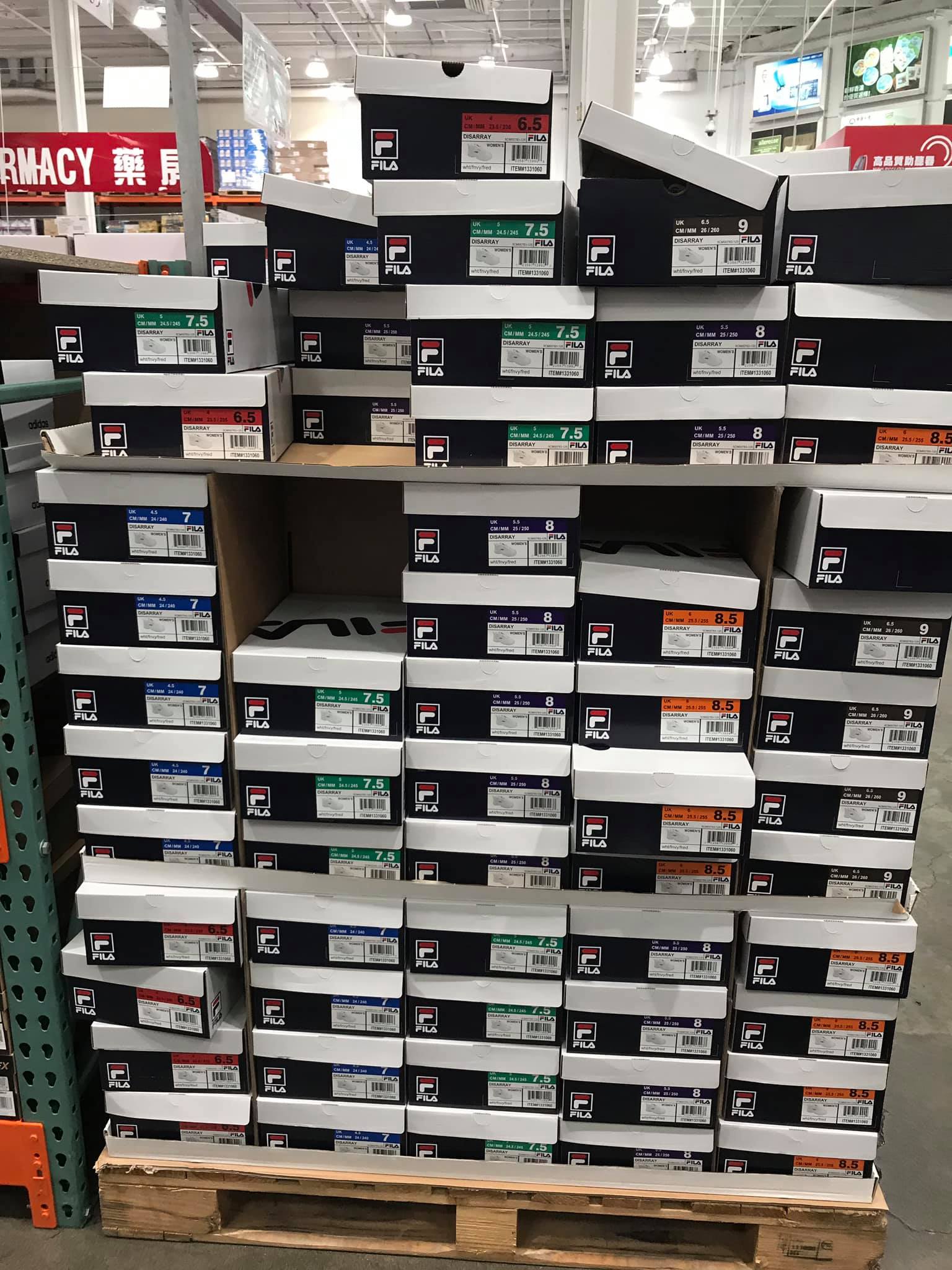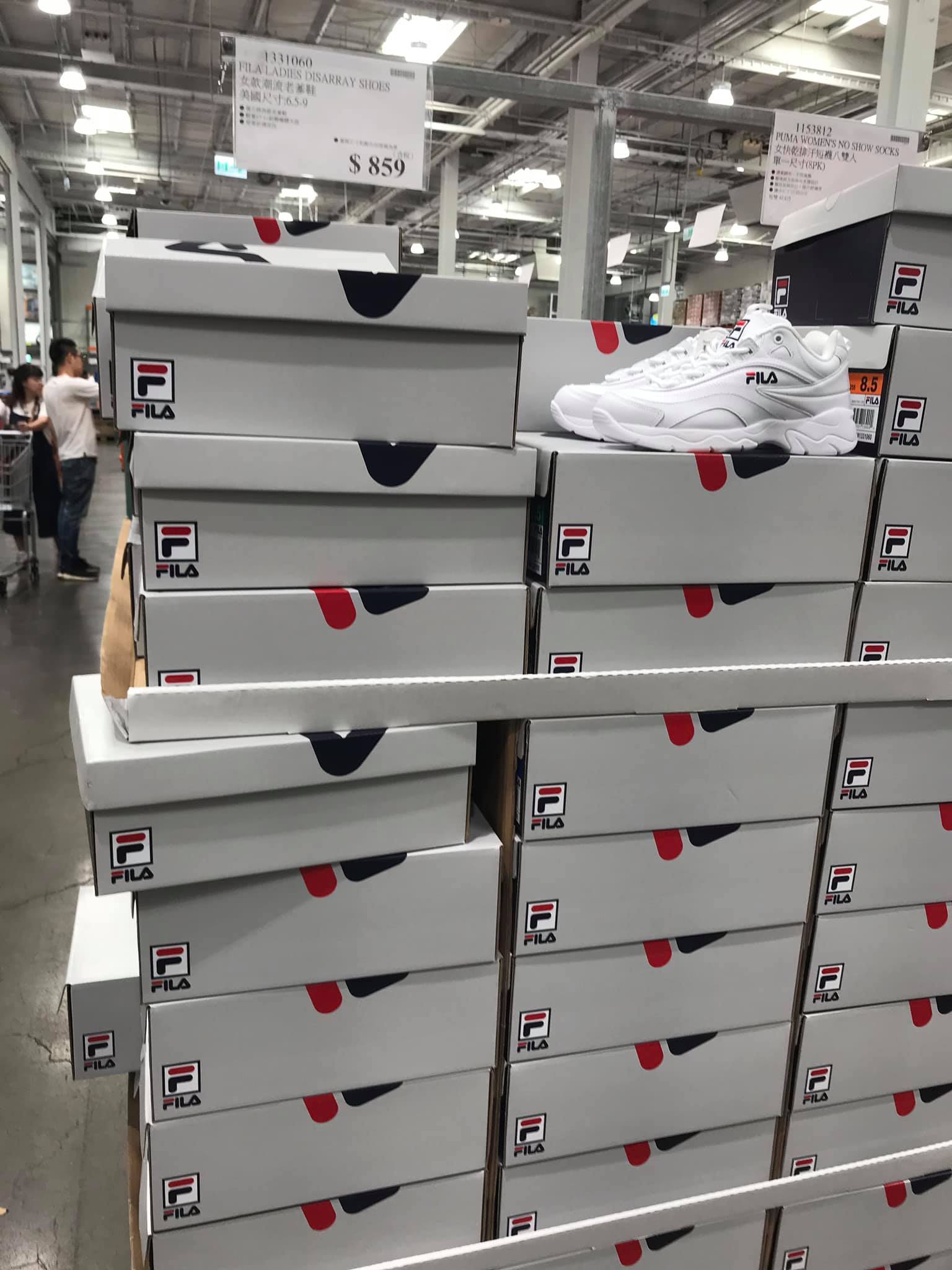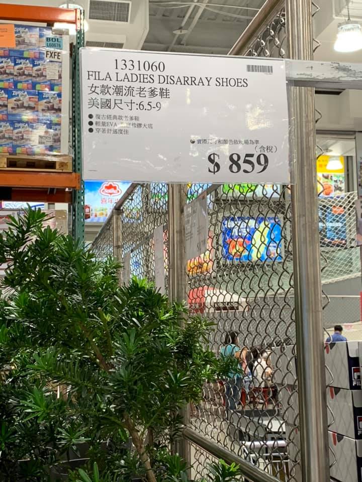 ▼好市多進貨的「FILA LADIES DISARRAY SHOES 女性潮流老爹鞋」,尺寸齊全,從6.5到9號應有盡有。鞋子售價為859元,而官網的價格為2480元,差價近3倍。