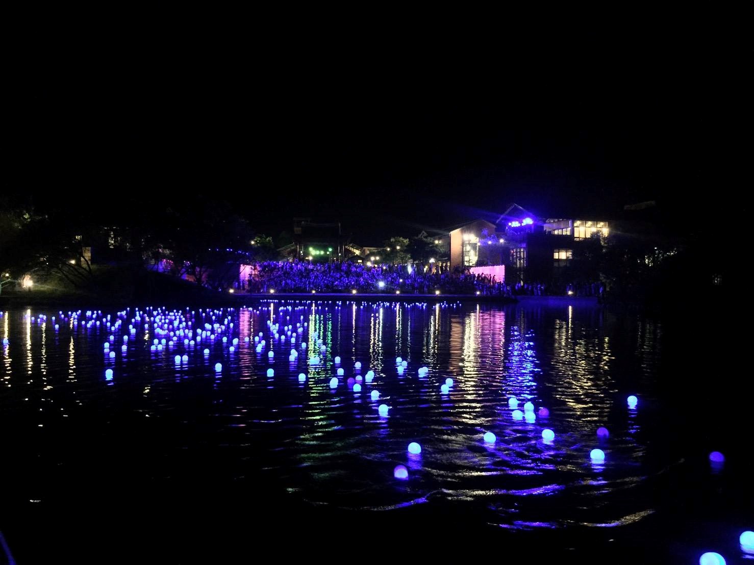 2019年08月08日雖然七夕已經過了,但浪漫的氛圍依舊不減,以往在七夕前後舉辦浪漫活動的宜蘭傳統藝術中心,今年仍然不讓民眾失望,數以千計的LED球燈「祈緣星」,讓整個湖面散發出微微藍光,一眼望去彷彿看見馬祖的藍眼淚美景!除此之外,今年加碼打造出「水上夜光版雙心石滬」,也是必拍打卡熱點!