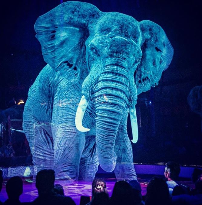 ▼2. 德國馬戲團跟上時代,利用投影代替活動物!
