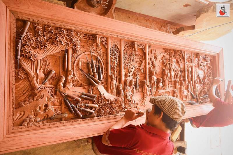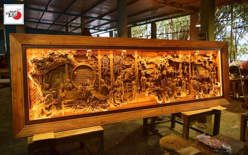 ▼Au Lac Wood Art是一個非常有名的團隊,他們製造過很多精彩的作品。比如這幅大型木雕作品,背景複雜、人物繁多,看起來很漂亮。