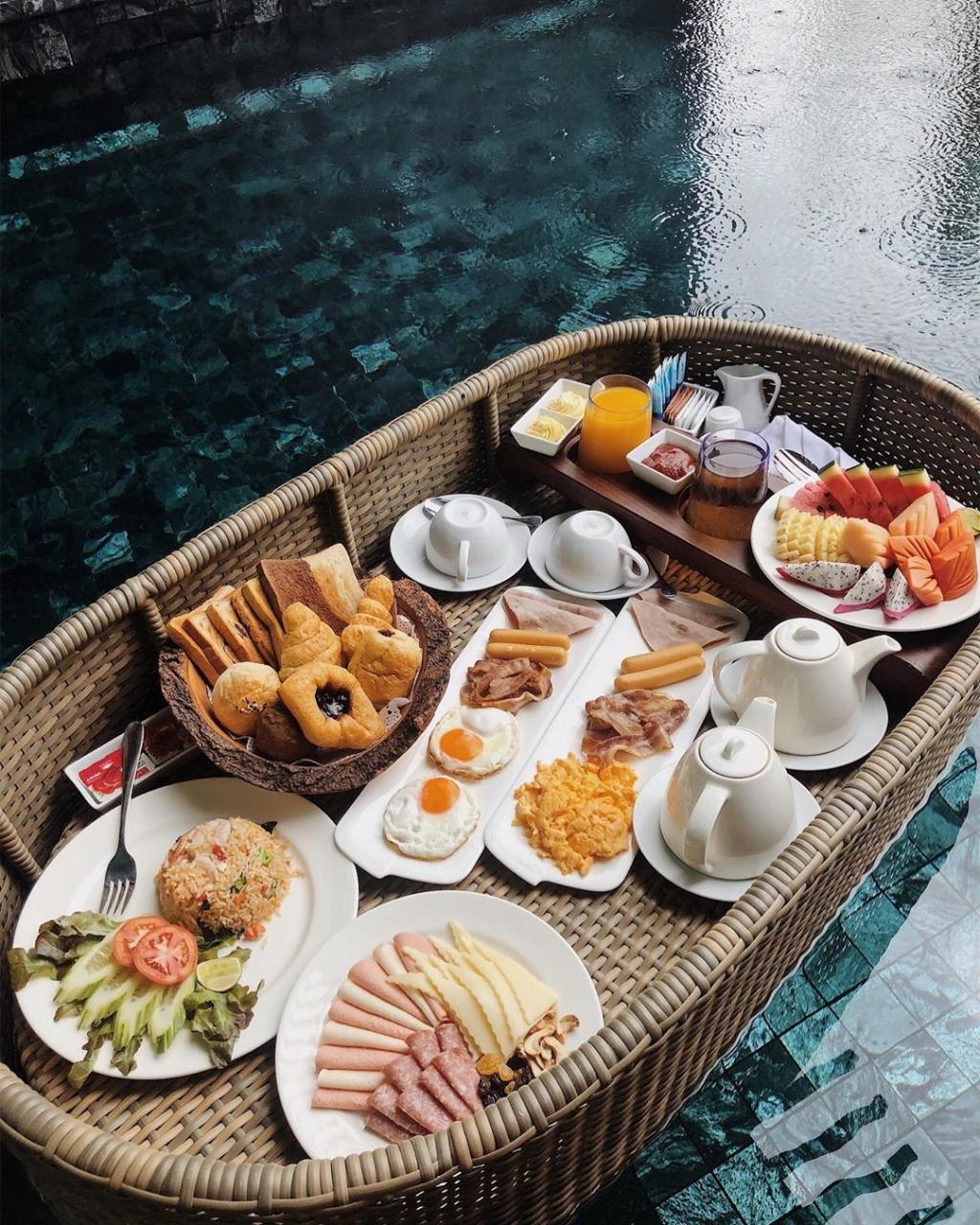 ▼在房間的泳池中享受早餐,開始美好的一天。