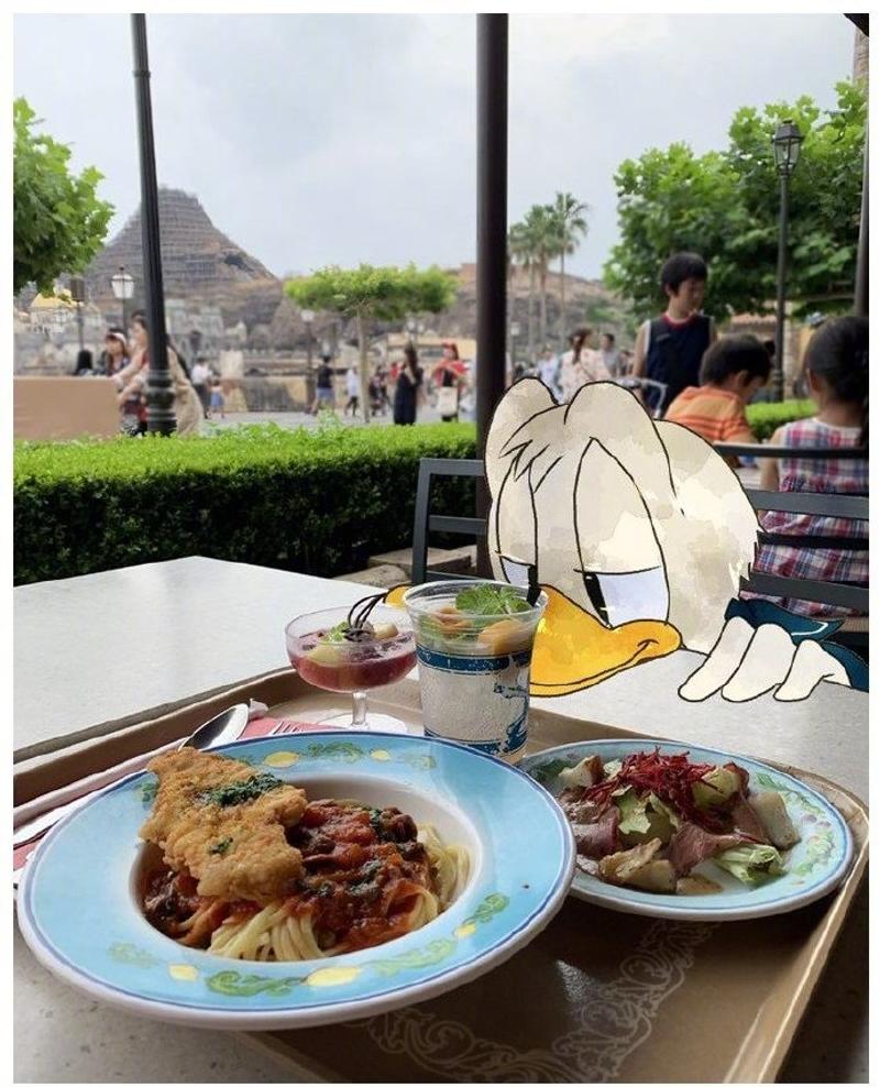 ▼唐老鴨也抵擋不住美食的誘惑。