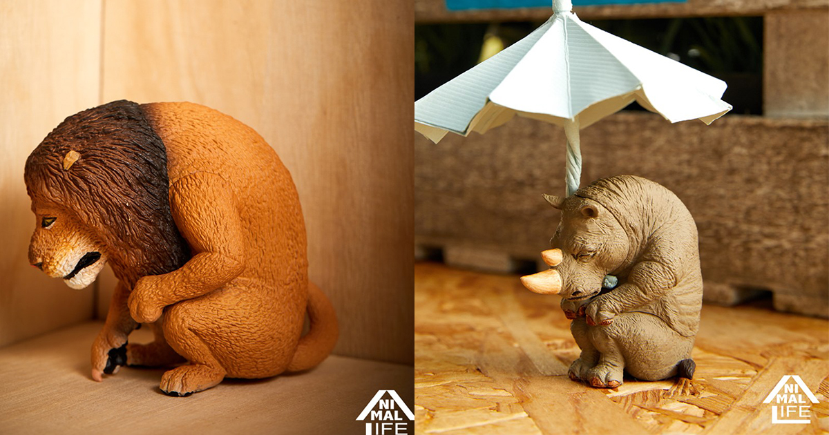 ▼其中包含憔悴的恐龍、縮成一團的鯊魚、低頭沈思的獅子、難過的犀牛、流淚的河馬和對著天空落淚的老鷹,透過這系列來展現動物們在兇惡的外表下,不想再勇敢的脆弱面貌!