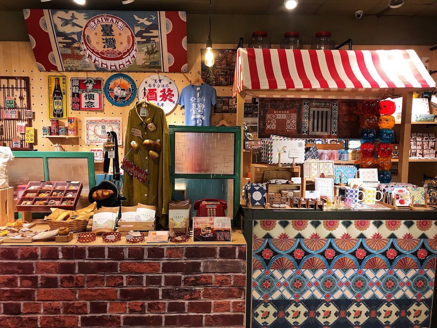 ▼商店以台式紅磚、花磚、復古海報,以及經典小豬撲滿、舊式轉盤電話、黃色啤酒籃等復古物件擺設,喚醒你的懷舊記憶。