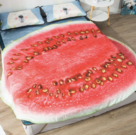 ▼螃蟹涼被走紅後,網友還分享了許多造型奇特的被子,比如這款西瓜被子。