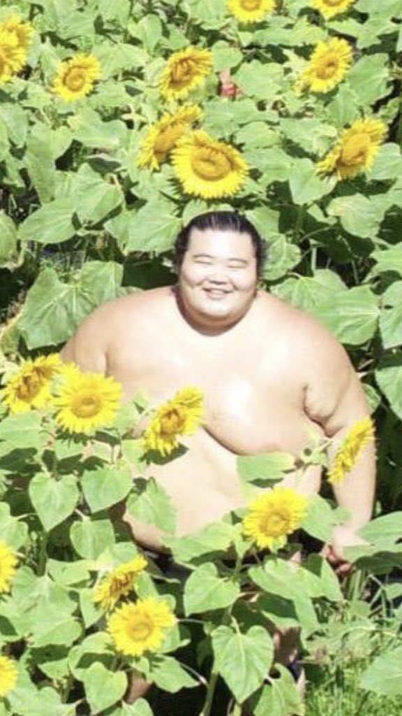 2019年08月15日當相撲力士遇上向日葵花田,畫面居然無違和感?!日本大相撲芝田山部屋在進行夏日集訓時,場地附近有一大片的向日葵花田,於是他們就趁著休息時間去欣賞美景,還玩很嗨地對著鏡頭擺姿勢拍大合照!