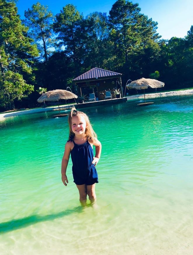 ▼他大概花了2萬美元(約台幣62.6萬元),在後花園中建造一個小綠洲般的沙灘。這裡有碧水,還有水上小屋、沙灘傘。當大家都熱得受不了,去海邊納涼時,Eric和家人來到花園中,就能開啟海邊度假模式。
