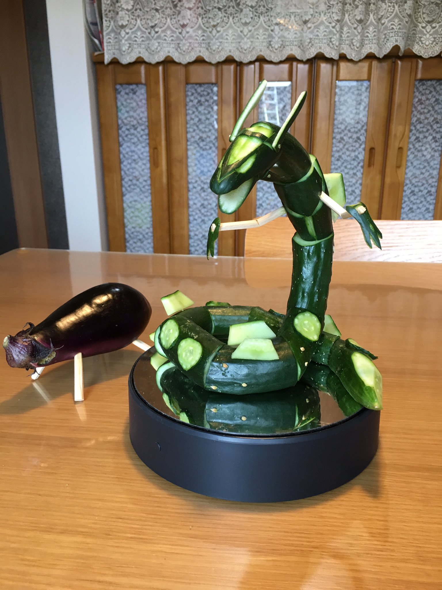 ▼一名網友竟然用小黃瓜做了精靈寶可夢「烈空坐」!