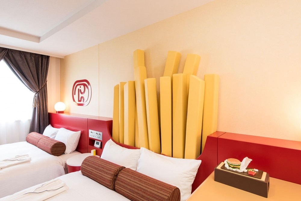 ▼一進到房間,映入眼簾的就是床頭的巨大薯條,睡在床上感覺就可以聞到薯條的香味了!