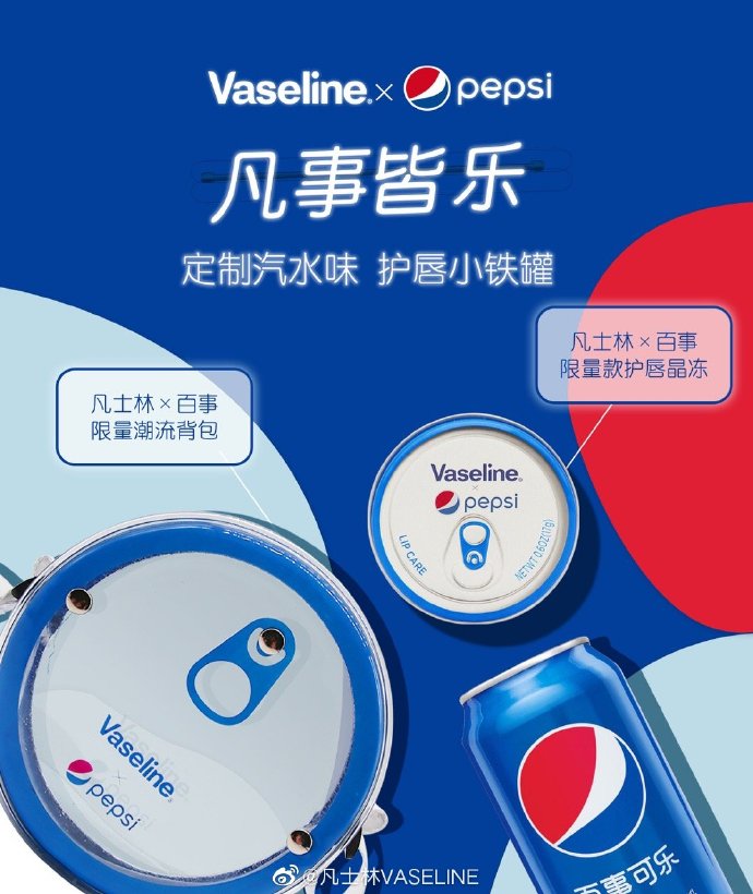 2019年08月21日品牌間的跨界聯乘很常見,但凡士林與百事可樂聯乘?這跨度也太大了吧!不過一切皆有可能,這次凡士林就攜手百事可樂,推出了聯名款潤唇膏,從包裝到味道都有小巧思,讓人恨不能馬上帶回家~