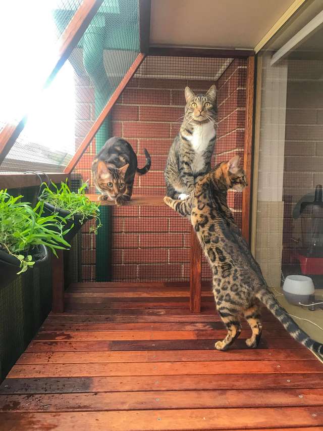 2019年08月22日大家都知道,貓咪是種慵懶、喜歡晒太陽、捉摸不定的迷樣生物,人類永遠都搞不清楚牠們到底在想什麼,就只能夠盡量配合牠們的各種需求!飼養了3隻貓咪的鏟屎官 Aimee Heywood,就為了滿足家中貓咪都愛跑到戶外玩樂的習慣,專程為牠們建造了一個專屬於貓咪的陽台基地!