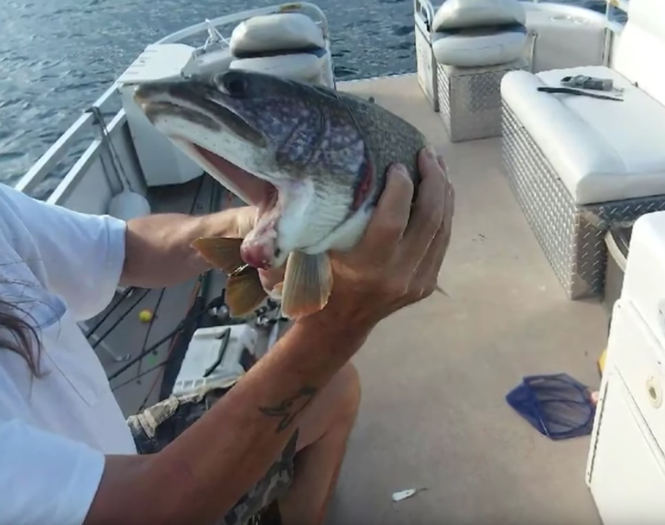 2019年08月23日兩張嘴的謎樣生物!美國紐約女子紀德斯(Debbie Geddes)在尚普蘭湖釣魚時,她完全不敢相信自己居然釣到罕見的魚,牠的嘴巴竟然有超過一個…臉書粉專「Knotty Boys Fishing」發言人也覺得怪,直呼是前所未見的怪事!