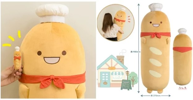 ▼為了迎接不久前剛推出的角落生物「麵包店長」,San - X 也推出了真人尺寸的麵包店長玩偶!不過很明顯可以看到,麵包店長並沒有拉拉熊如此巨大,身高只有90公分高的它讓身材較嬌小的女生也可以輕鬆抱起!