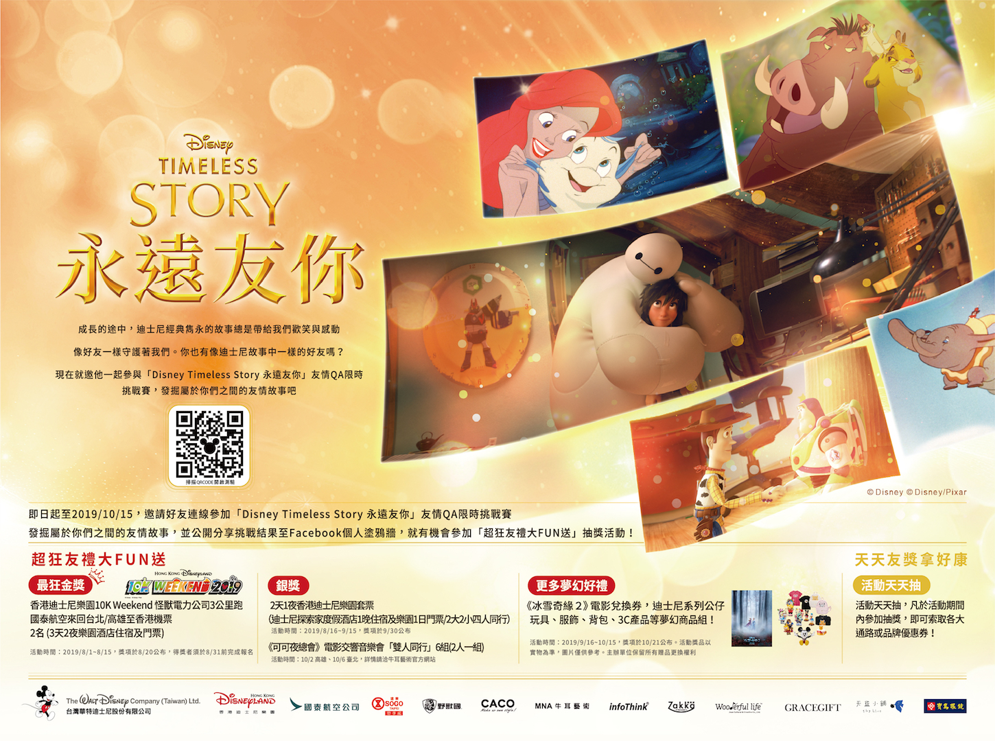 ▼而迪士尼這次活動也串連好禮大方送,只要邀請好友進行「友情QA限時賽」,並公開分享遊戲結果至Facebook個人塗鴉牆,便能參加抽獎,各種迪士尼好禮等著你喔!(獎品詳情請參閱官網)