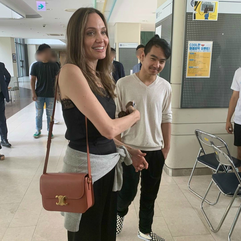 2019年08月24日提起安潔莉納裘莉(Angelina Jolie),很多人首先想到的是她與前夫布萊德彼特(Brad Pitt)的糾葛,還有一部部好看的電影。其實這位44歲的好萊塢巨星私底下也是一個普通的媽媽。她的大兒子Maddox Jolie-Pitt已經到了18歲要讀大學的年紀,Maddox沒有選擇美國的大學,而是到韓國的延世大學讀書。安潔莉納裘莉專門陪兒子去學校,在校園內大方與同學們合照,全程非常親民。