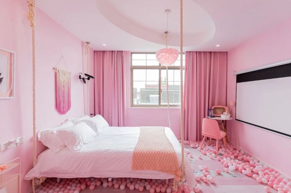 ▼這間民宿共有11間不同設計的房間,用不同的元素創造出獨特的風格,這間粉紅色調的房間超能激發少女心。