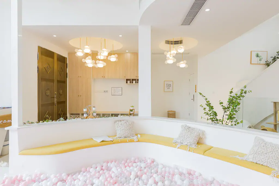 ▼天花板上有雲朵裝飾,唯美的場景就像是置身夢境。