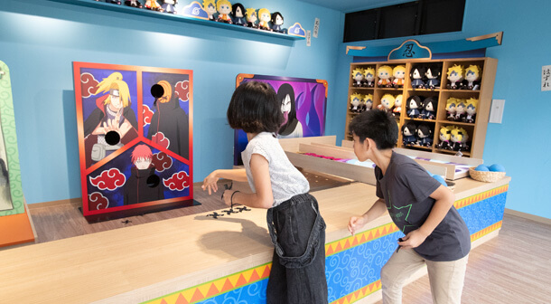 ▼3.忍術祭典:瞄準目標投擲青蛙、發射手裡劍等,透過祭典中常見的小遊戲來帶回只有這裡能收到的獎品:鳴人、慕留人與佐助的娃娃。