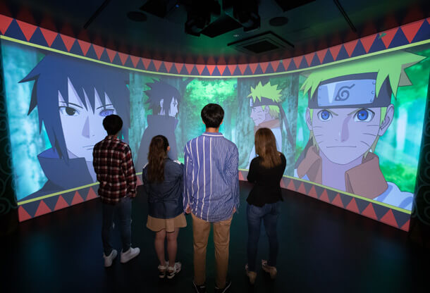 ▼2.忍道館:180度U型劇院,重現鳴人與佐助的各種經典場景,粉絲們可以透過大銀幕充分享受《火影忍者》中的世界觀。館內還有鳴人的等身雕像,一定要來跟他合照~