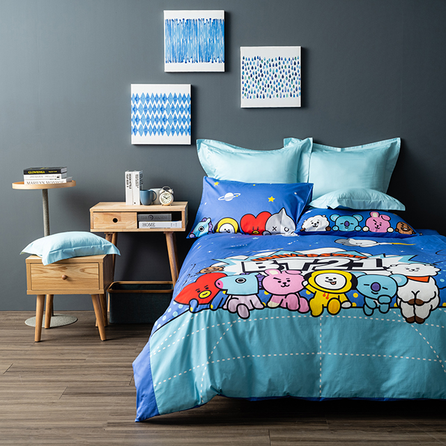 ▼「BT21純棉床被組-單人/雙人」把所有成員印在柔軟的被單上,讓成員們陪著你一起做美夢~超值價 單人3,580/雙人3,980元。