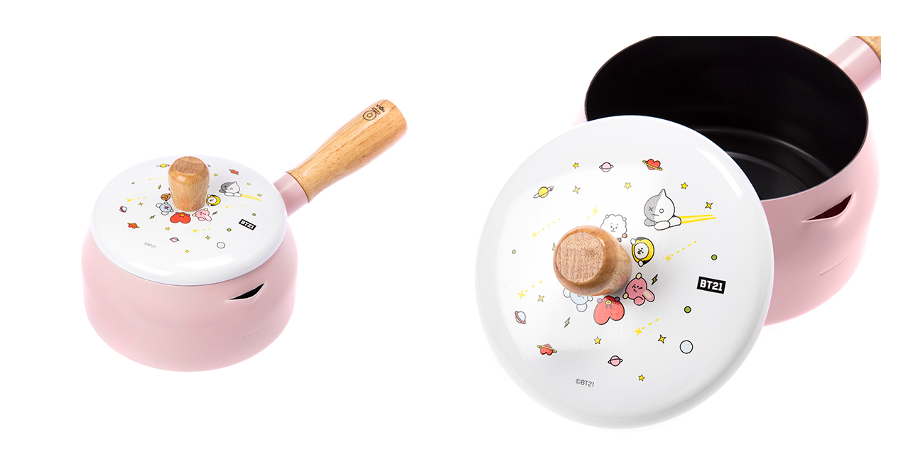 ▼「BT21單柄迷你鐵鍋」側開嘴設計,讓你在瀝水時更方便!超值價499元/件。