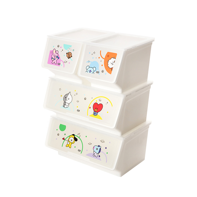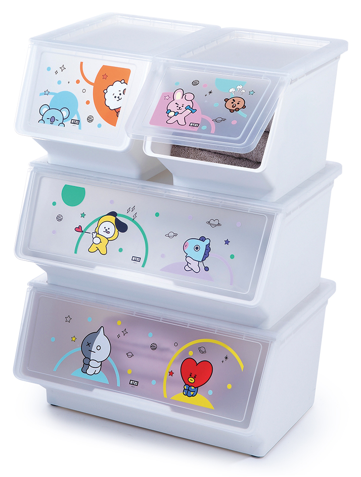 ▼「BT21掀蓋收納箱附輪款4」專利卡榫設計,單手就可以固定!(46L NT$699/23L NT$499)。