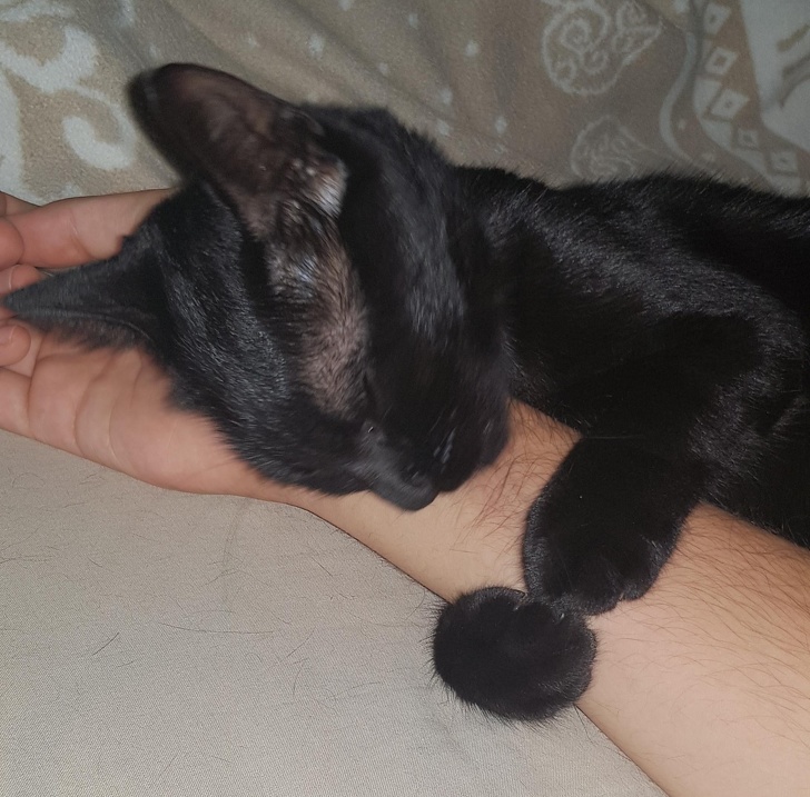 ▼「我家貓咪每晚都這樣睡覺。」