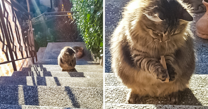 ▼「昨晚一回家,就看到我家貓咪蹲在那裡…」