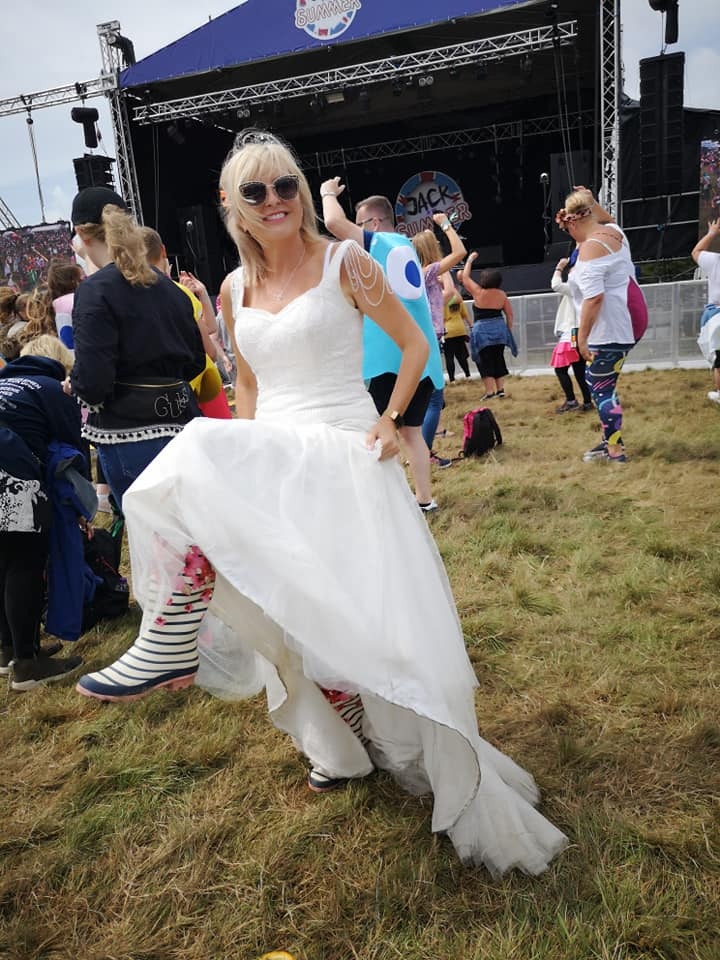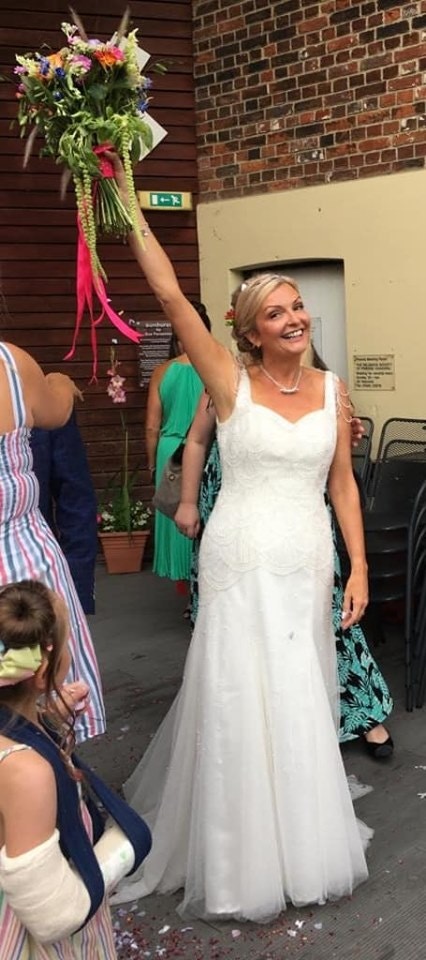 ▼今年8月,Dawn與57歲的丈夫Steve結婚。她在慈善商店花300英鎊(約台幣11,500元),買下了這件原價1800英鎊的婚紗。Dawn和Steve都曾有過一段婚姻,Dawn表示:「我之前和大家一樣,婚紗穿一次後就收起來了。這次我想製造一點回憶。」