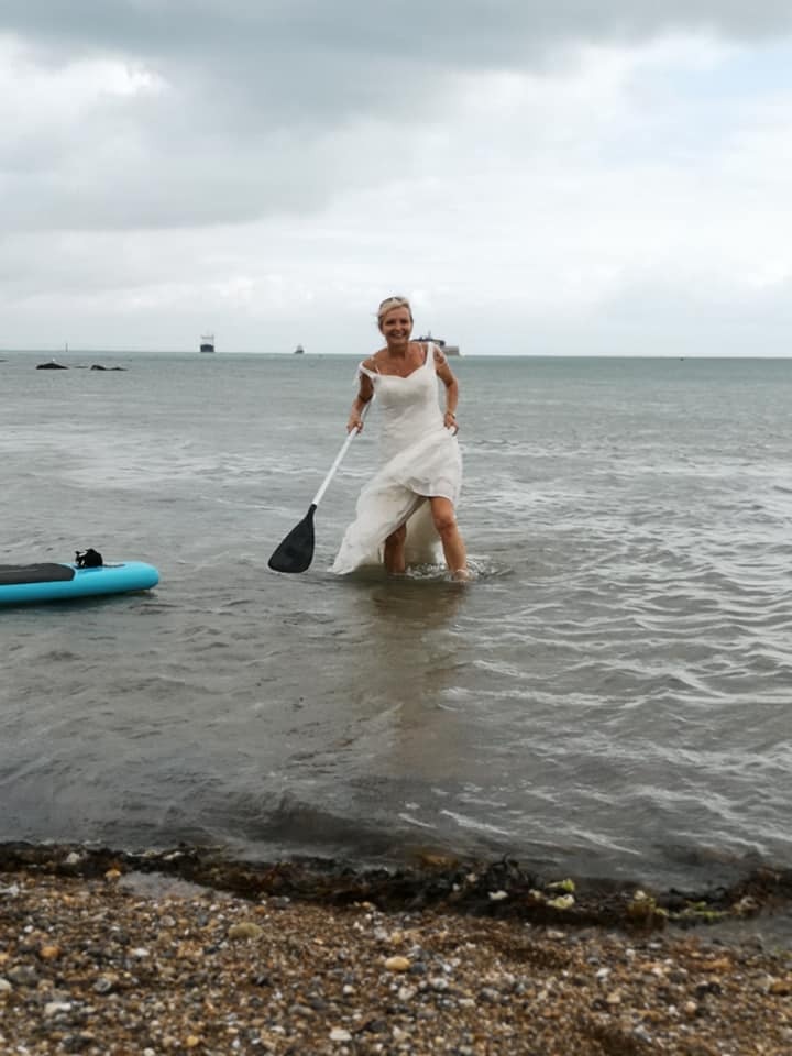 誰說婚紗只能穿一次? 她「一次穿夠本」煮飯、划船、逛超市樣樣來