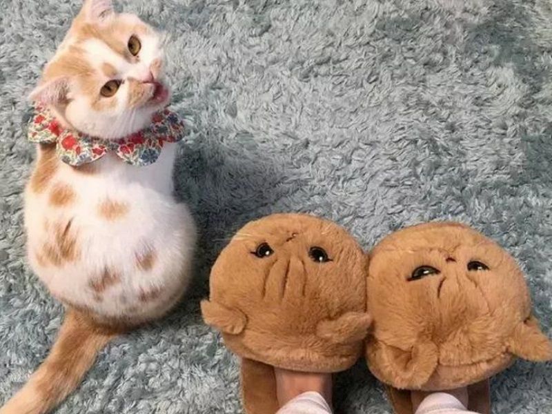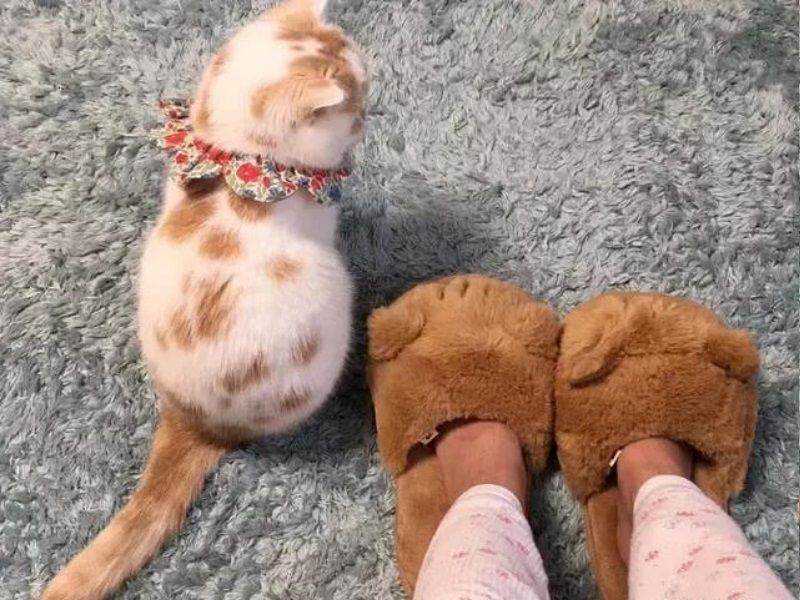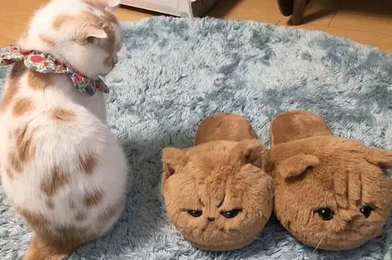 人家生氣了!貓咪不爽奴才買可愛貓咪拖鞋 回頭瞪眼:有我還不夠嗎