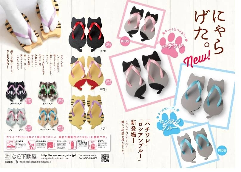 ▼奈良的木屐老店「なら下駄屋」,這次推出了以木屐造型為靈感的貓咪夾腳拖,讓拖鞋也變得像貓咪一樣可愛!