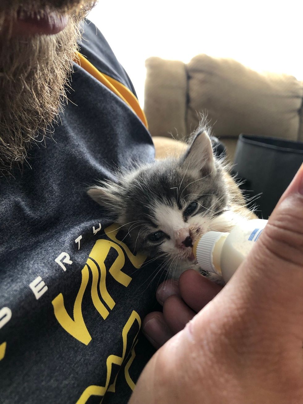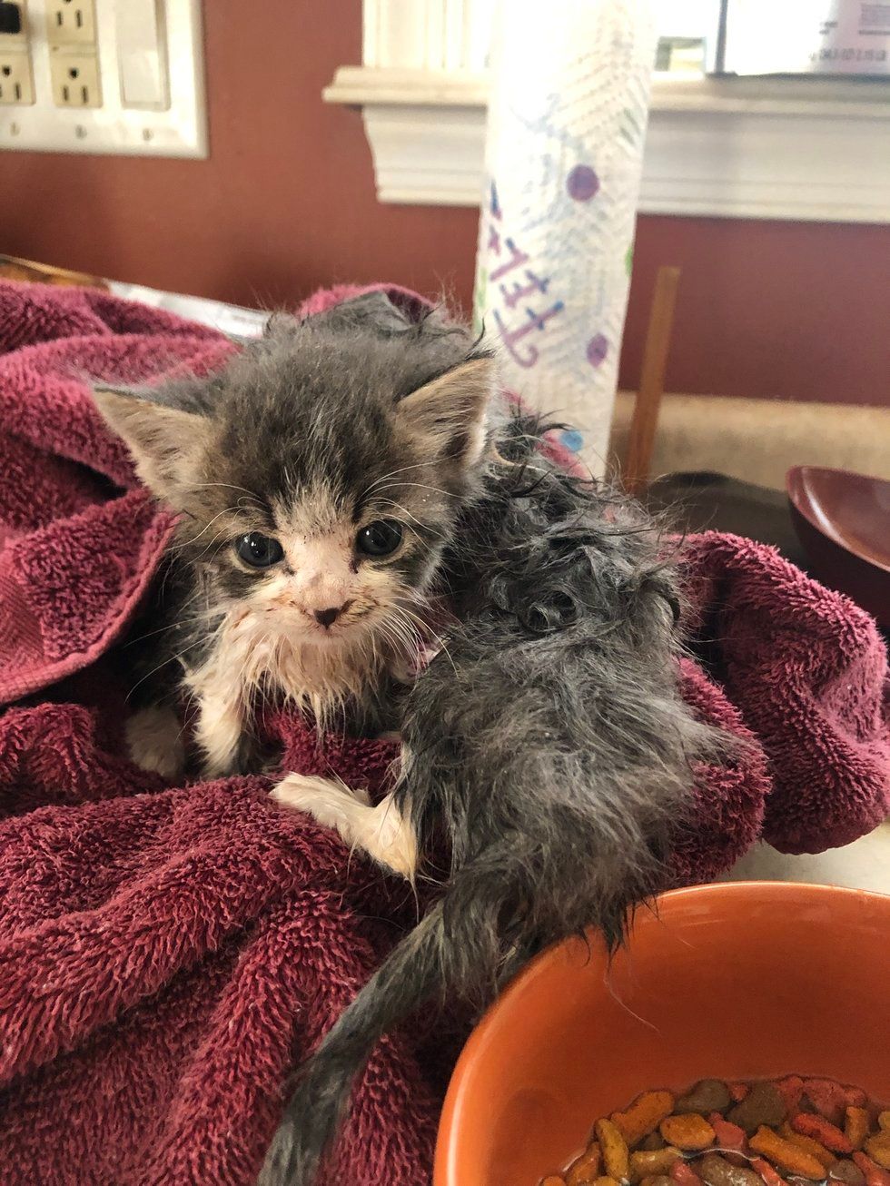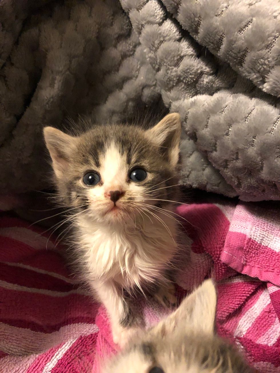 ▼那是另外一隻小貓,與Hannah懷中的這隻小貓是兄妹。Hannah將這兩隻小貓都帶回家,給牠們洗了好幾次澡,又給牠們餵了一些食物。她給哥哥取名為Theon,妹妹取名為Yara。