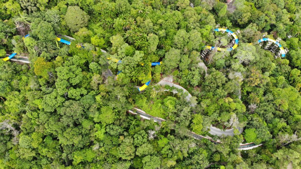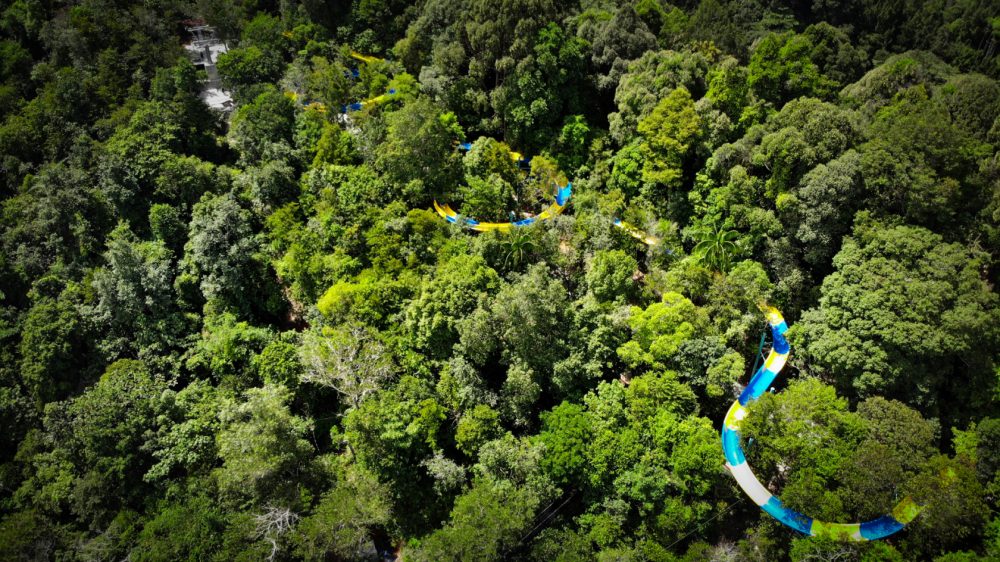 ▼滑梯建置在樹林之間,讓你可以滑行之餘,還能欣賞馬來西亞熱帶雨林的獨特風貌,絕對是你從未體驗過的水上極速體驗!