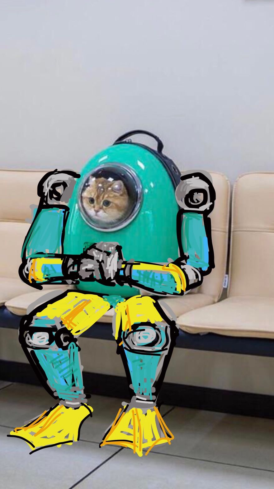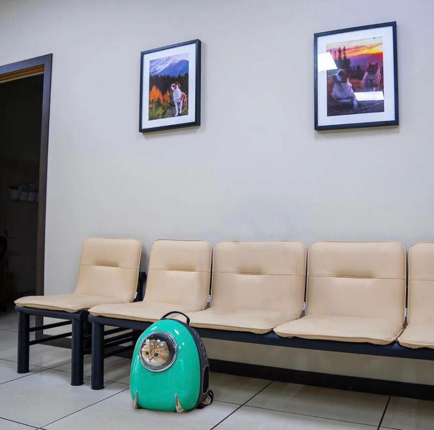 ▼主人外出時把Hosico裝進太空艙寵物包,然後拍下了一張看起來好寂寞的照片,沒想到就這樣引起了大家的興趣~連PS大神也被吸引。