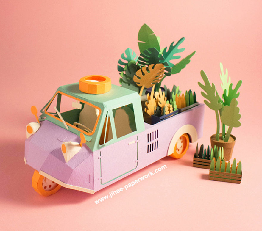 Lee Ji-hee的這些作品,都是根據客戶的要求製作的。超商、產品生產商等等通過Lee Ji-hee的摺紙作品來表達自己的廣告訴求,他們的選擇真是太對啦~